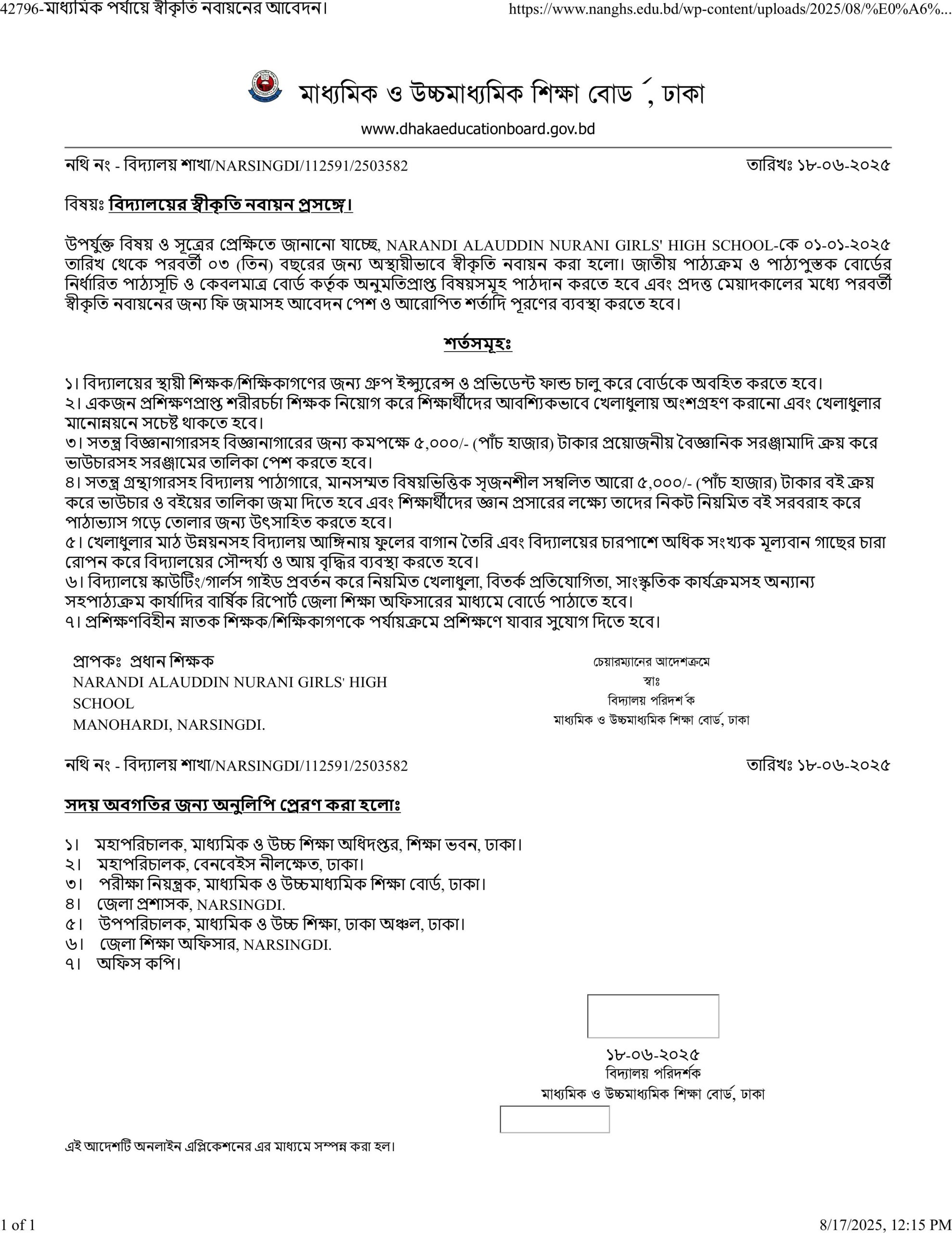 স্বীকৃতি নবায়ন ২০২৫ইং